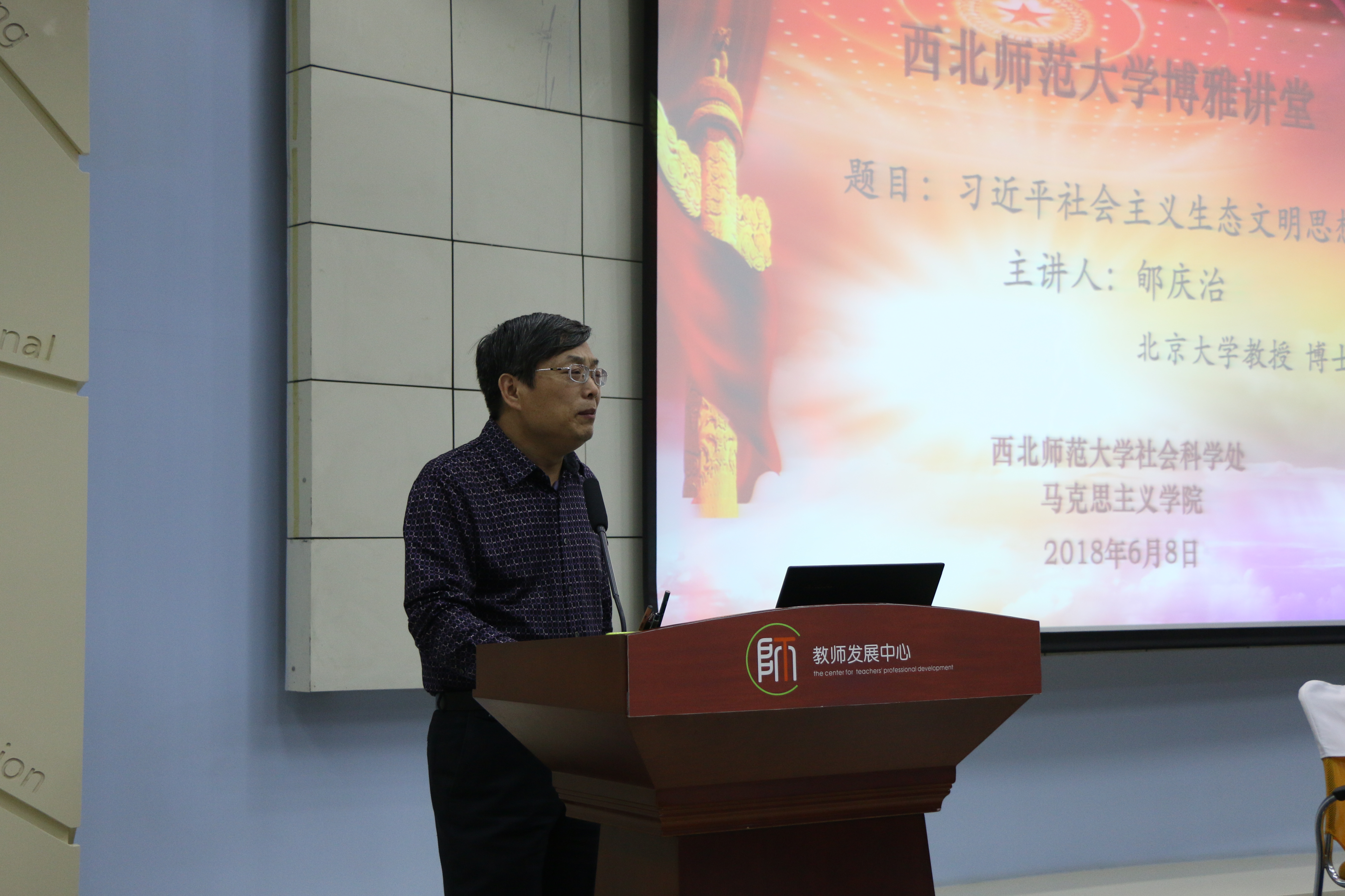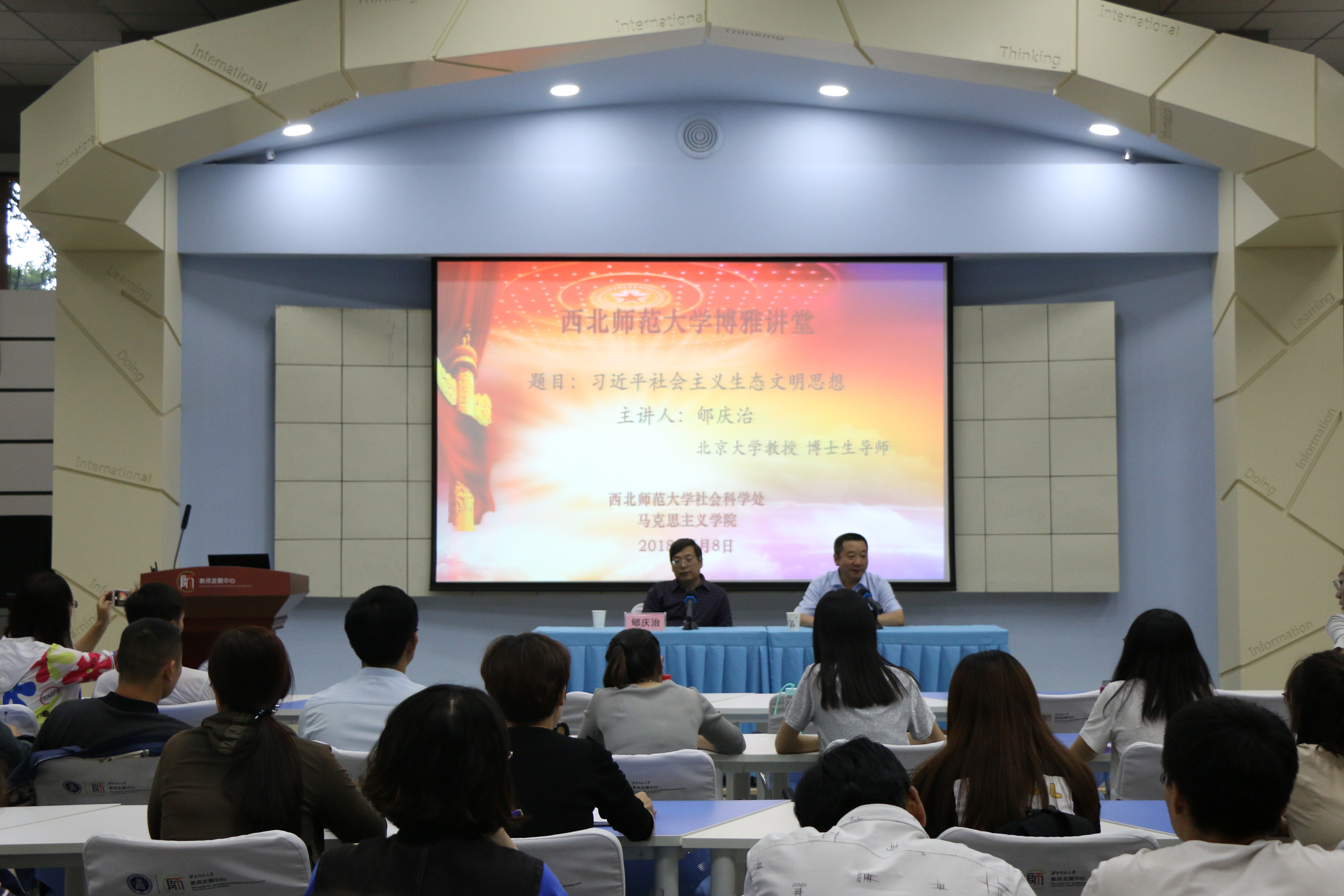 2018年6日8日晚,437437必赢国际网址博雅讲堂在教师发展中心二楼举行。学院邀请北京大学郇庆治教授作题为“习近平社会主义生态文明思想”的讲座,讲座由院长王宗礼教授主持。