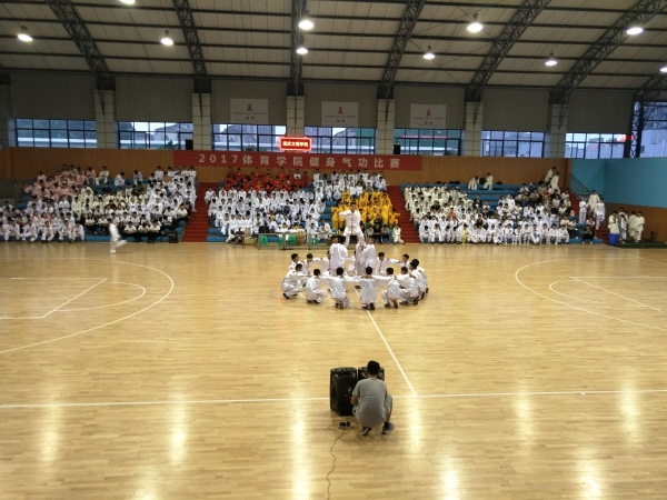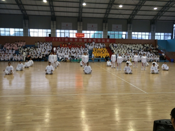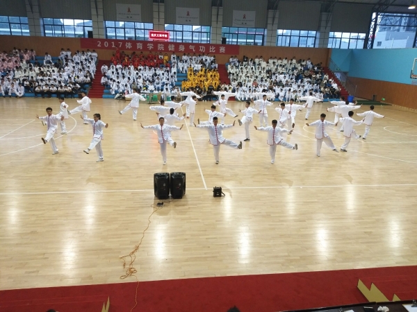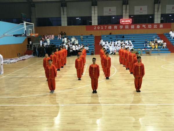 为深入贯彻落实国家大力推广全民健身的战略,进一步推动健身气功项目在高校的发展,提高健身热情、增强体质,扎实践行学校实践应用性培养目标,强化学生专业技能训练,beat365官方网站于21日下午18:00在红河A区篮球馆举办了“2017beat365官方网站健身气功”比赛,beat365党总支书记李旻、副书记袁高燕、副院长孔庆波出席开幕现场。beat365官方网站非毕业班全体学子以班级为单位参赛,共计26个参赛单位。开幕式由夏赟主持,比赛裁判由beat365官方网站武术技击类课程组专业教师担任。