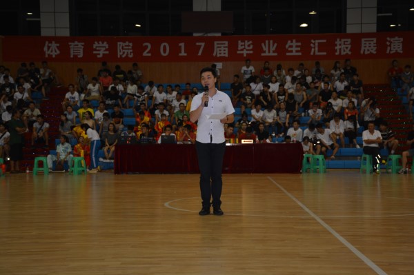 接着,毕业生代表庄庆作出毕业讲演,回忆到四年大家同舟共济、风雨兼程一路上的点点滴滴,有欢笑、有汗水,说不尽的是同学情、诉不完的是师生谊。心中回荡的最多的两个字是“感谢”,毕业不代表结束,而是真正的开始,在以后的道路上我们将继续向前奋斗,用实际行动证明着他们的能力,让母校以自己为荣,发扬“瓜山”精神,绽放体育精神。
