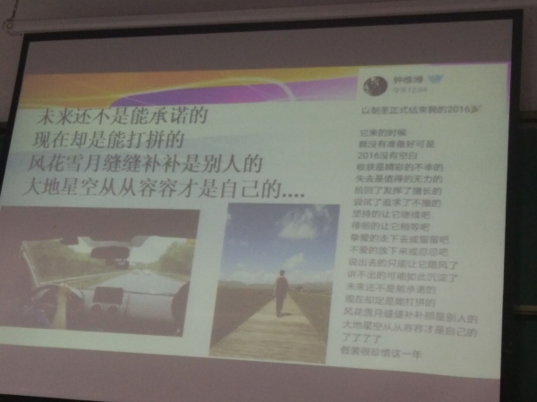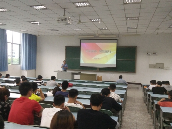 按照学校组织部的工作要求及学院党务工作计划,beat365官方网站教工支部书记钟利于2017年6月25日晚18:45为2015级全体学生讲以“不忘初心,坚毅前行”为主题的专题思想政治课。2015级全体学生参加,辅导员朱顺全主持。