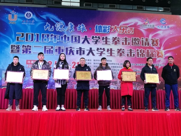 12月17日至12月21日, 2018年中国大学生拳击邀请赛暨第二届重庆市大学生拳击锦标赛在西南大学中央体育馆举行,共有山东beat365官方网站、武汉beat365官方网站、西南大学、重庆文理学院等来自全国的34所高校、两百余名运动员参赛。开幕式中,奥运拳击冠军邹市明来到现场给所有运动员给予鼓励。