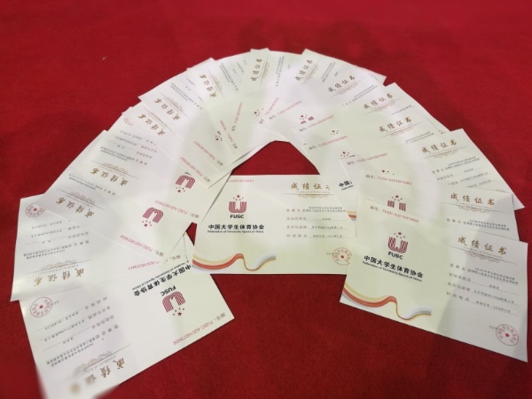 我校拳击代表队在教练熊华宇、武卫的带领下,经过前期的刻苦训练及比赛现场的顽强拼搏,最终获得男子甲组81+公斤级冠军,男子丙组58公斤级、81公斤级、81+公斤级季军;女子丙组51公斤级、57公斤级亚军;女子48公斤级、57公斤级季军。还获得女子丙组团体第二,男子丙组团体第四,男子甲组团体第五,女子甲组团体第七的优异成绩。