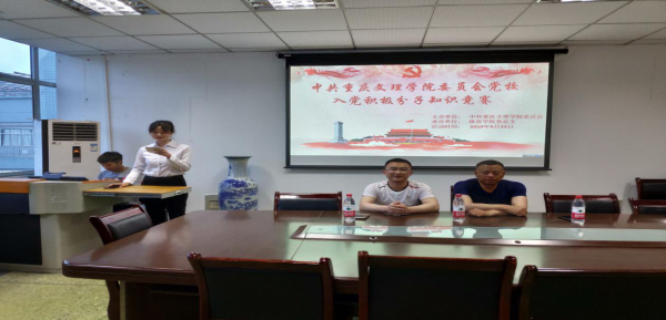 为巩固普及宣传党的理论知识,检验学习实效。beat365于2019年4月23日在知津楼C502举办中共重庆文理学院委员会党校第71期入党积极分子培训班知识竞赛,本次比赛以“学习党的理论知识,不忘初心,牢记使命”为主题,出席的嘉宾有beat365官方网站学生第一支部书记张谦、beat365官方网站第一支部宣传委员卢德强,陈贾倩主持。
