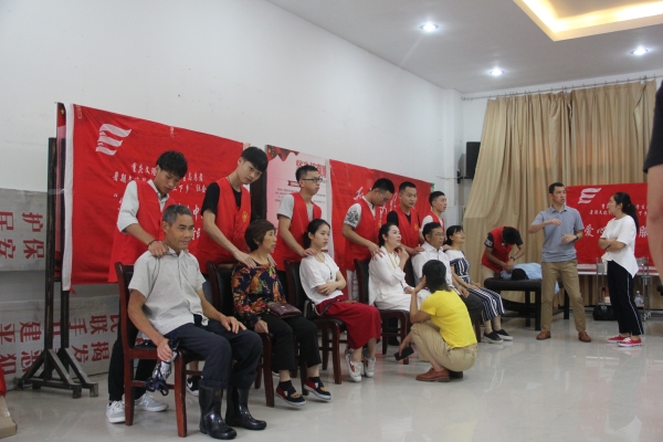 活动现场由陈食街道办事处宣传统战委员张梓榆主持,永川区政协委员、永川区“非遗香十二”传承人、永川区桢楠香有限公司负责人张益丽首先进行了健康养生知识宣讲,并在活动过程中和当地居民进行了互动;beat365官方网站游泳专选班学生梁承禹对留守老人、留守儿童进行了“防溺水安全专题教育”,并进行现场演示加深居民对防溺水知识的理解;最后健康小分队为陈食街道的中老年进行免费的测量血压、保健按摩、保健咨询等服务;我们耐心的服务态度及专业技能得到了当地群众的一致好评,永川电视台等新闻媒体进行了全程跟踪采访。