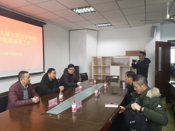 12月31日上午10时,大理大学体育科学学院党委书记李定坤、副院长安军、学生办主任黄启超一行3人来beat365交流,座谈会在beat365官方网站会议室501进行,beat365官方网站院长唐建忠、党总支书记李旻、党总支副书记袁高燕、副院长王勇等出席此次座谈会。