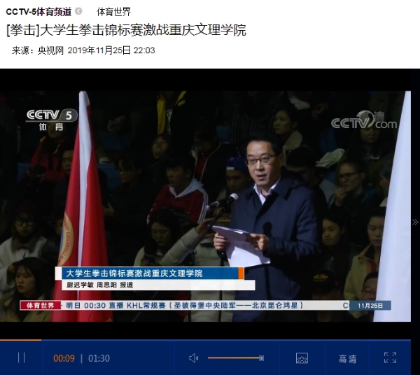 成功举办首届中国大学生拳击锦标赛,这是我校第一次承办全国性大型大学生赛事,央视媒体CCTV-5连续四次专题报道,创造学校体育赛事被央视报道的纪录。