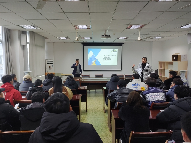 首先,袁高燕代表beat365官方网站对北京万国天骐体育股份有限公司和重庆迈斯体育公司的到来表示热烈欢迎,为beat365学生提供优质实习与就业岗位表示感谢,希望同学们抓住此次机会,到企业去锻炼自己,提升就业竞争力。北京万国天骐体育股份有限公司重庆总经理刘思聪、重庆迈斯体育公司总经理余义红分别做了招聘岗位、职业规划、就业前景的宣讲。最后,同学们和企业代表就“实习+就业”事宜进行了现场交流。