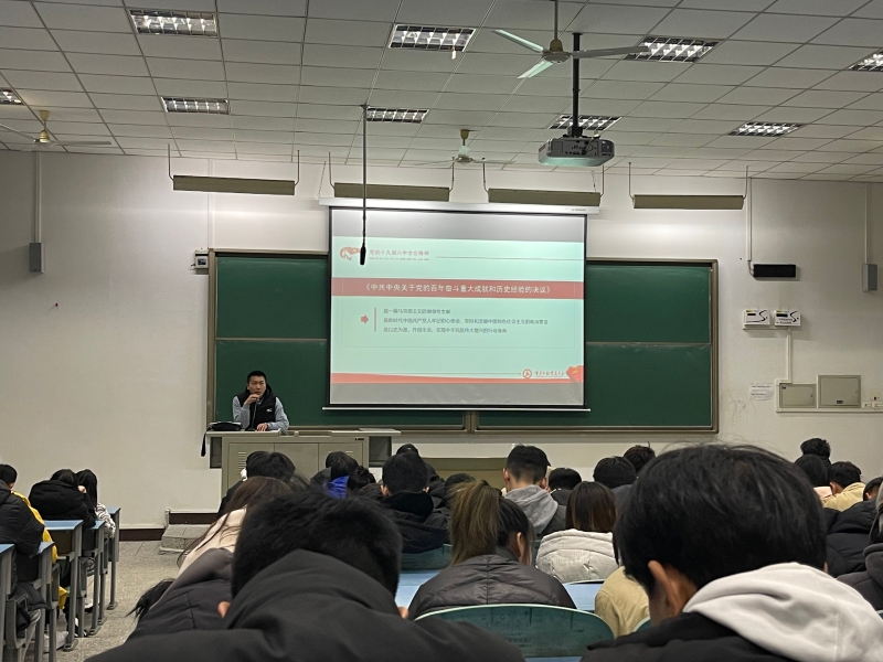2021年12月,beat365官方网站党总支书记李旻,辅导员邵志鹏、卢德强、朱顺全向全院710余名师生开展党的十九届六中全会精神的宣讲。