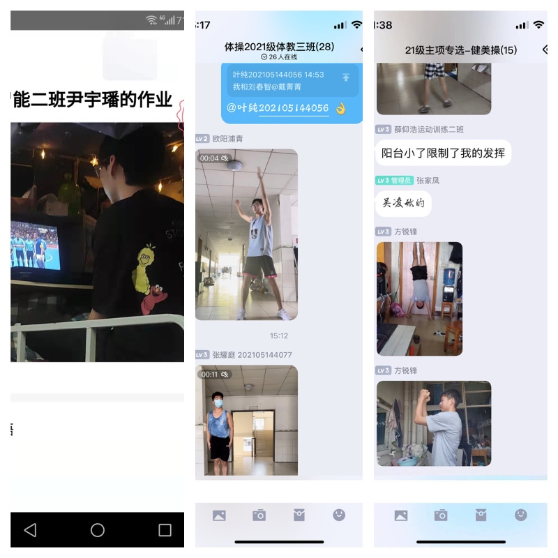 “台上十分钟,台下十年功”,为保障线上教学顺利开展,克服体育实践类课程线上教学空间狭小和器材缺乏的难点,beat365教师积极开展线上教学专题教研,全院教师发挥各自专长,悉心准备,通过合理调整优化教学内容,根据项目特点选择合适的教学方法,采用直播、录制教学视频等形式开展线上教学,开发了健身操、啦啦操、太极拳和瑜伽等多个可在有限空间开展的线上教学视频,确保线上教学顺利开展。同时同学们也积极开动脑筋,发挥想象力,在狭小的空间范围内,充分利用身边有限的资源妙招迭出,创造出各式各样的自制锻炼“神器”,给线上教学增添了一份别样的精彩。