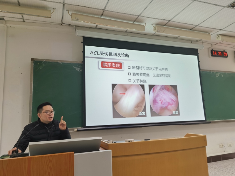 讲座分两场举行,第一场唐进博士以《ACL损伤的诊疗与康复》为题,从ACL解剖及受伤机制、ACL损伤的诊断、ACL损伤的治疗、ACL-R术后康复原则等方面进行了介绍和案例分析。第二场赵沛博士以《浅谈中国运动康复行业发展》为题,从康复专业行业背景、市场现况、发展趋势等三方面进行了介绍和阐释。