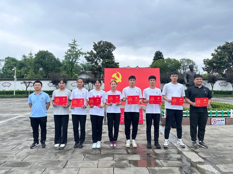 在聂帅故里广场前,全体同志共唱国际歌。学生党支部书记卢德强同志宣读新发展党员名单并发放入党通知书。学院党委副书记、纪委书记余继军面向党旗,带领大家庄严宣誓,重温了入党誓词,表达了对党的深厚感情和为党的事业奋斗终身的决心。