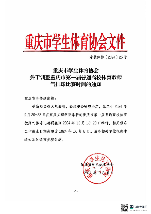 关于调整重庆市第一届普通高校体育教师气排球比赛时间的通知