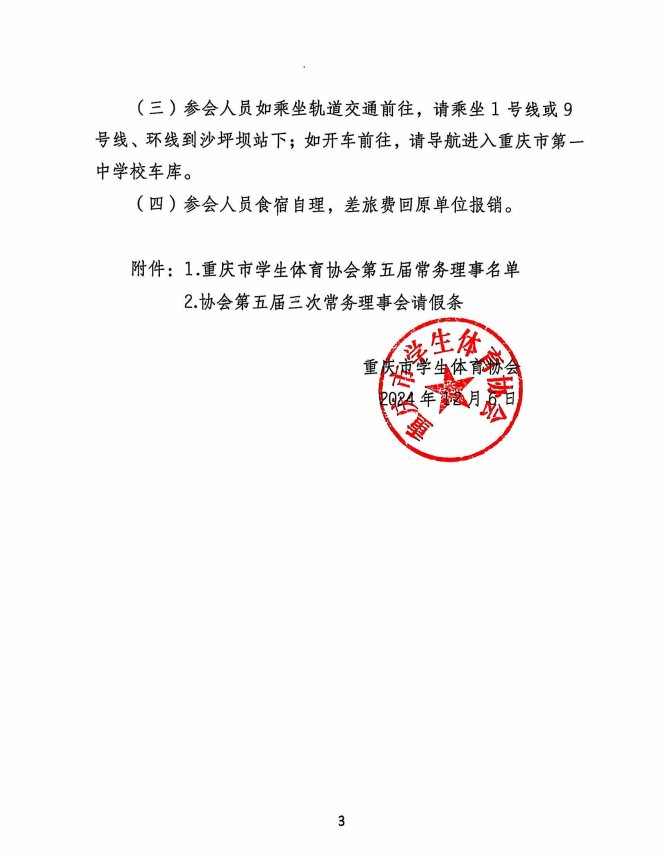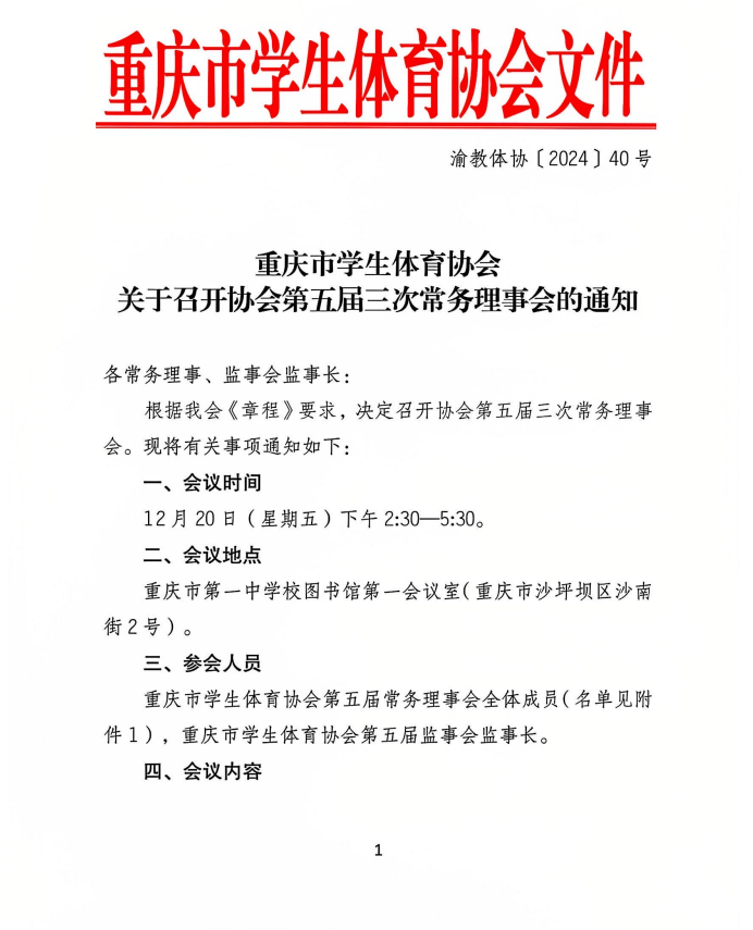 关于召开重庆市学生体育协会第五届三次常务理事会的通知