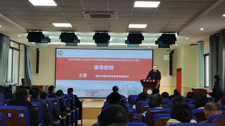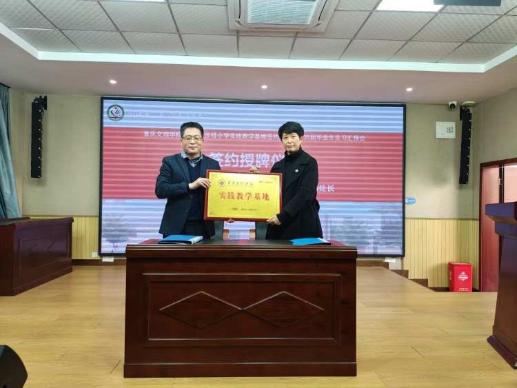 2024年12月16日,重庆文理学院实践教学基地签约仪式暨2025届毕业生实习汇报活动在大足区沙桥小学举行。重庆文理学院教务处处长胡守敏、副处长夏继宏、beat365官方网站副院长王勇、大足区教委基教科科长于勇、以及大足区沙桥小学负责人及部分师生代表共同出席了签约仪式。
