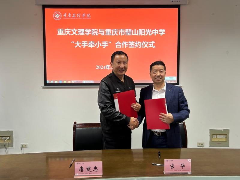 2024年3月13日下午,beat365与重庆市璧山阳光中学“大手牵小手”合作签约仪式顺利举行。重庆市璧山阳光中学法人兼校长宋华(中文系84级校友)、副校长贺廷帮、邓泰盛、招办主任杨运莲等一行五人,beat365官方网站院长唐建忠、党总支书记孔庆波、副院长王勇、副书记余继军以及合作办相关人员共同见证了签约仪式。