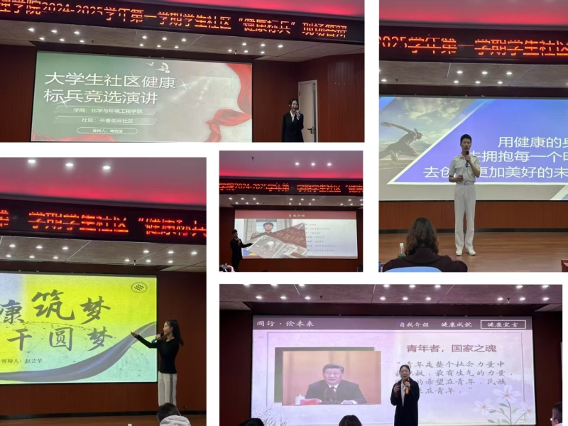 主持人介绍了与会领导和评委,并宣读了评选活动的评分细则。各参评对象依次上台进行展示答辩。他们结合自己的实际经历,分享了如何在日常生活中保持身心健康、积极参与社区文体活动、关心同学身心健康等方面的心得与体会。每位选手的展示都充满了正能量,赢得了在场观众的阵阵掌声。