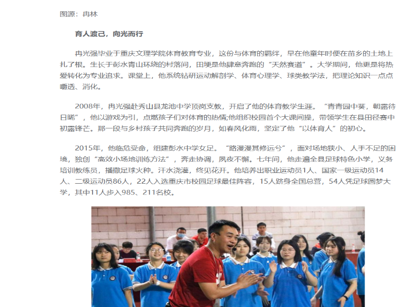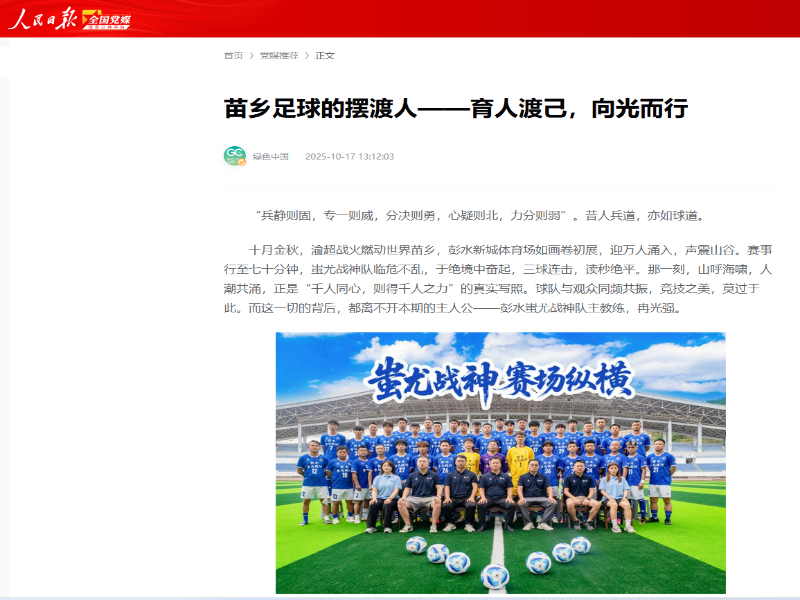 人民日报报道beat365官方网站校友冉光强:苗乡足球的摆渡人——育人渡己,向光而行